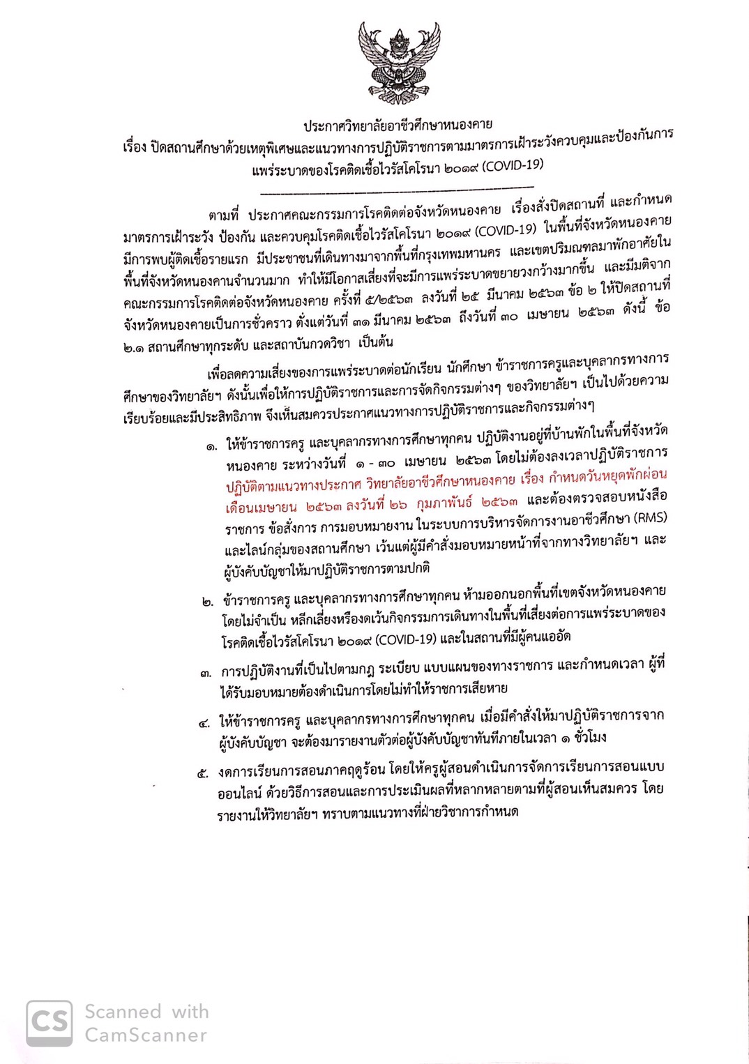 เนื่องด้วยประกาศวิทยาลัยอาชีวศึกษาหนองคาย