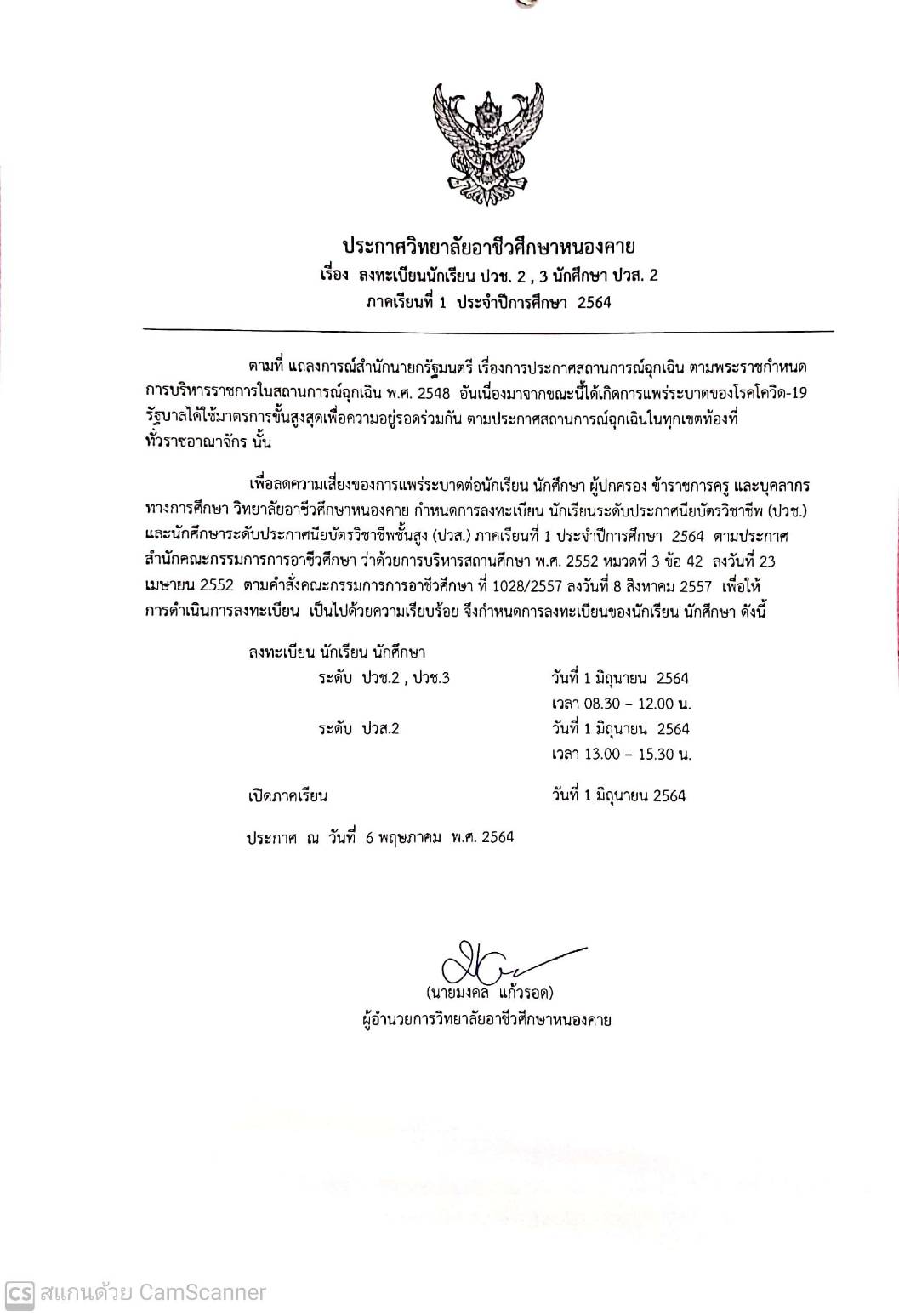 ลงทะเบียนนักเรียน ปวช 2,3 และ ปวส 2 ภาคเรียนที่ 2 ปีการศึกษา 2564